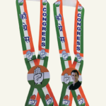 Designed for easy wear around the neck, this campaign neck band is lightweight, comfortable, and suitable for long hours of use during rallies and public outreach programs. The printed Congress hand symbol and leader image medallion at the bottom further enhance its campaign appeal and visual identity.