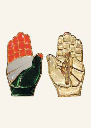 Congress Panja Badge featuring the iconic Congress hand symbol, designed for political rallies, campaign events, and supporter distribution. Made from durable metal with enamel-style finishing, this badge offers a clean and bold representation of the Indian National Congress.