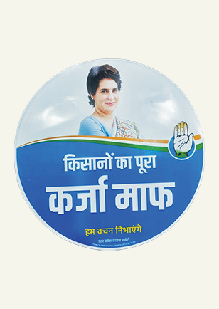 Featuring leader images, the Congress hand symbol (Panja), and campaign messages, these circular stickers help increase campaign visibility during election activities and public programs. They are commonly used on cars, bikes, campaign booths, rally materials, and promotional displays, helping supporters represent the Indian National Congress during campaigns.